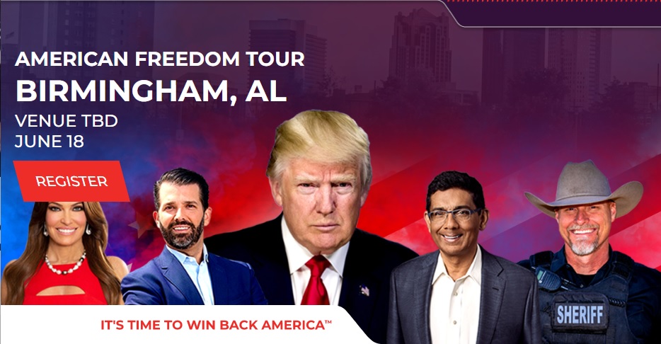 도널드 트럼프 전 대통령이 올 여름 앨라배마주로 돌아올 예정이라고 ‘미국 자유 투어'(America Freedom Tour) 웹사이트가 밝혔다.
