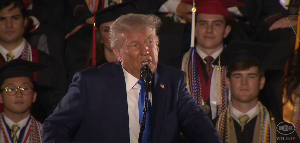 트럼프 대통령은 이날 연설에서 2020년 대선 조작, 이민 정책과 트랜스젠더 운동선수의 여성 스포츠 참여 문제, 자신의 첫 100일 성과를 강조, 세금 정책과 관세 계획을 옹호 등의 정치적 발언은 일부 졸업생들과 지역 사회에서 비판을 받았다.
