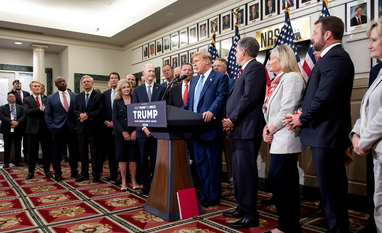 트럼프 전 대통령은 조찬회동에서 의원들과 여론조사 수치를 포함해 주요 주(州)들에서의 선거 상황에 대해 의견을 주고받았다고 한다.