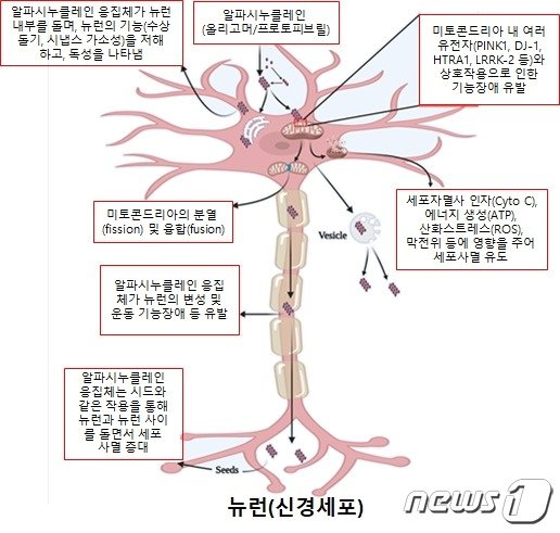 이번 논문은 뇌세포 사이에 신경전달을 돕는 단백질인 알파시누클레인의 이상 증상으로 인해 올리고머와 같은 독성을 가진 단백질 응집체를 형성하는데, 이러한 응집이 미토콘드리아의 기능장애는 물론 뇌신경세포의 사멸을 초래함으로써 파킨슨병을 일으킨다는 점에 중점을 두고 있다.