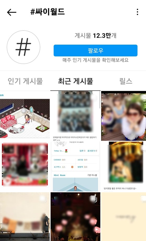 8일 인스타그램에선 ‘#싸이월드’ 제목을 단 게시물이 줄이어 등장하고 있다.