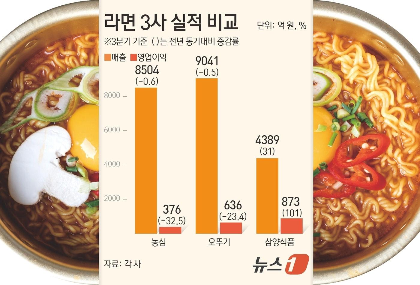 국내 라면 시장의 ‘빅3’로 불리는 농심(004370)·오뚜기(007310)·삼양식품(003230)이 3분기 엇갈린 성적표를 받았다.