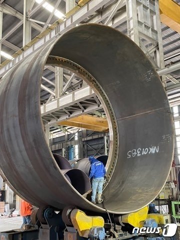 씨에스윈드가 포스코의 후판제품을 사용해 풍력타워용 구조물을 제작하고 있다.(씨에스윈드 제공)© 뉴스1