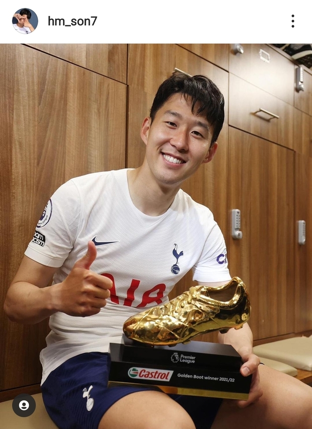 손흥민은 환한 표정과 함께 골든부츠를 받았다. 손흥민으로선 웃지 않을 이유가 없었다.