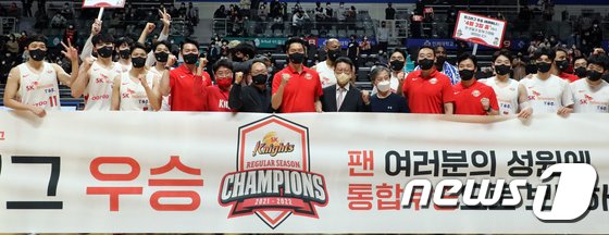 SK가 정규리그 우승을 차지한 것은 2012-13시즌, 2019-20시즌에 이어 통산 3번째다. 또 전희철 감독은 부임 첫 시즌에 정규리그 우승을 일군 역대 4번째 사령탑이 됐다.