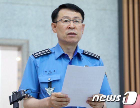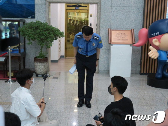 정봉훈 해양경찰청장이 22일 오후 4시 해양경찰청 1층 로비에서 국민의힘 해양수산부 공무원 피격사건 진상규명TF 면담 후 공식입장을 발표했다. 정 청장은 이날 "국민과 유족께 사과드린다"고 밝혔다.2022.6.22/뉴스1 © News1 박아론 기자