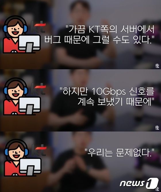 그러면서 “감액요청을 했지만 해결되지 않았고 KT에 (속도 저하와 관련된) 자료를 메일로 보냈다”며 “KT는 서버에 버그가 생기면 이러한 현상이 나타날 수 있다. 10Gbps 신호를 계속 보냈기 때문에 문제가 없다는 답변을 받았다”고 불만을 나타냈다.
