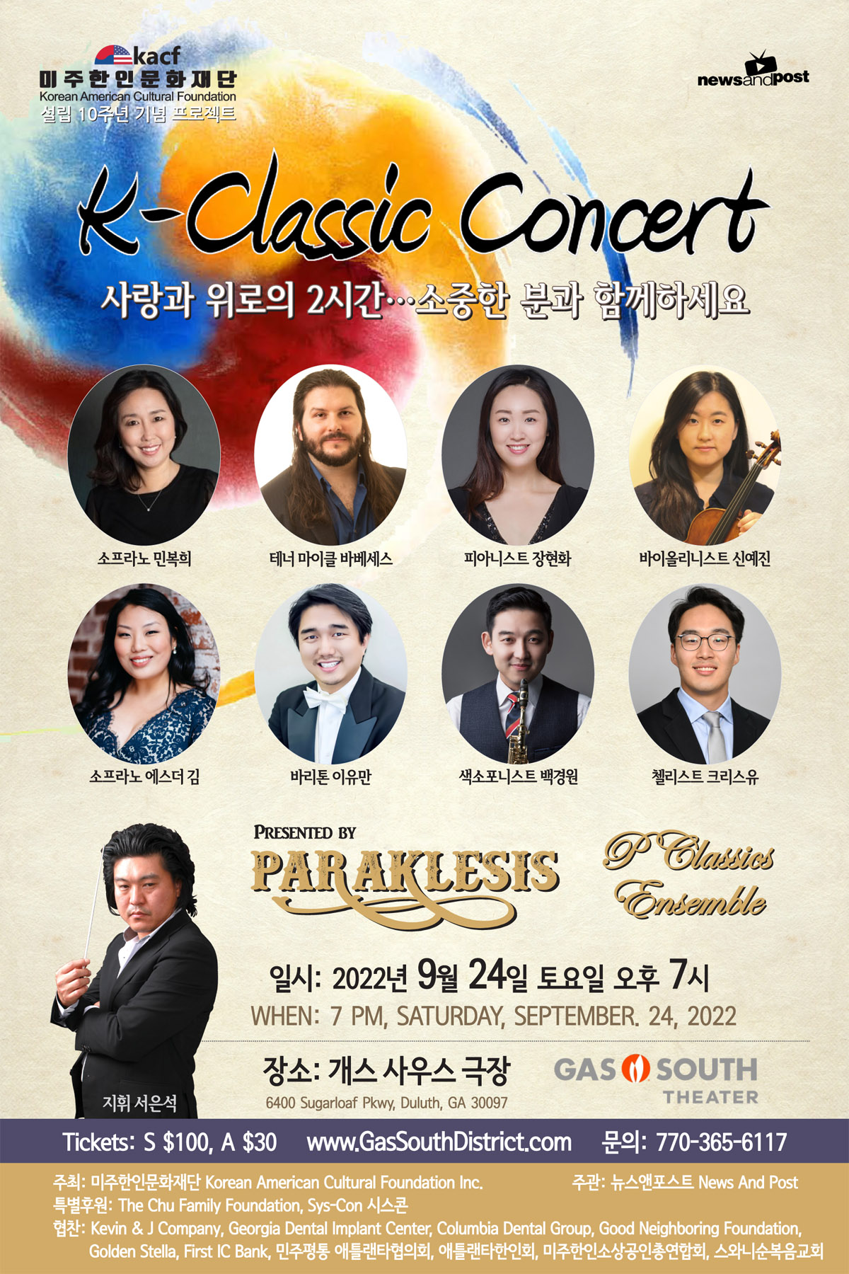 미주한인문화재단(대표 최은주)은 설립 10주년을 맞아 ‘K-Classic Concert’를 주최한다. 올해는 한국 가곡 탄생 100주년이라는 점에서 이번 음악회는 뜻깊은 무대가 될 것으로 기대를 모으고 있다.