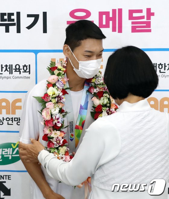 임대기 대한육상연맹 회장을 비롯해 연맹 관계자들이 현장에서 우상혁에게 꽃다발을 건네며 환영했다. 우상혁의 부모님도 함께하며 감격스러운 표정을 지었다.