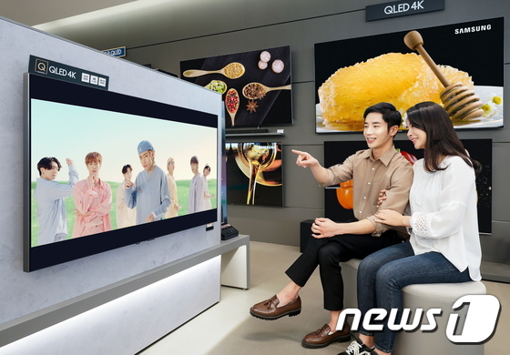 삼성 TV가 전시된 매장에서 방탄소년단의 ‘Dynamite’ 뮤직비디오가 나오는 모습. (삼성전자 제공) 2020.10.8/뉴스1