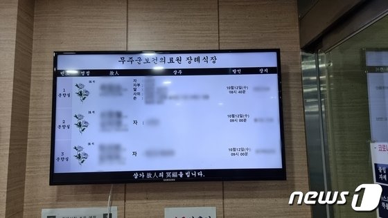 1번 분향소는 A씨, 2번 분향소는 큰사위(64)와 큰손녀(33), 3번은 작은딸(42)과 작은사위(49) 부부 빈소가 차려졌다. 전날 오후 4시45분께 무주군 무풍면 한 단독주택에서 일산화탄소 중독으로 추정되는 사고가 발생해 집주인 A씨 등 일가족 5명이 숨진 채 발견됐다.