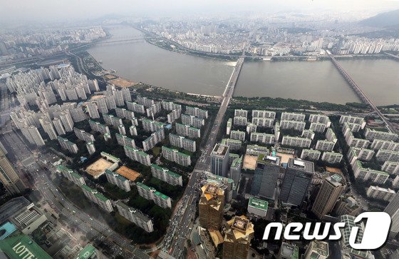 서울 송파구 롯데월드타워 서울스카이에서 바라본 아파트단지 모습. 2022.8.7/뉴스1 © News1 박세연 기자