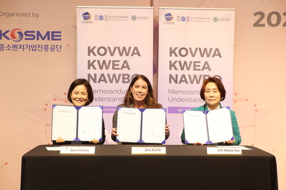 22일(현지시간) 미국 뉴욕대학교 킴멜센터에서 전미여성기업인협회와 한국여성경제인협회 및 한국여성벤처협회 3개 기관은 상호진출을 위한 협력 기반 구축에 합의하는 업무협약(MOU)를 맺었다.