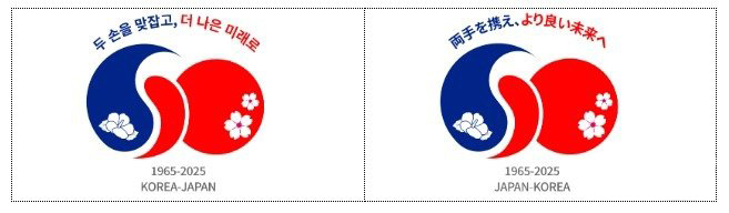 로고에는 양국의 국기 문양 등을 활용해 한국과 일본이 한데 어울리는 가운데 서로 존중하며 함께 협력해나가자는 의미가 표현돼 있다.