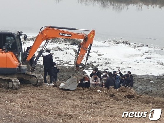검찰이 6일 경기 파주시 공릉천변 일대에서 택시기사와 동거 여성을 살해한 혐의로 구속된 이기영(31)을 대동해 시신을 유기했다고 지목한 장소에 대한 현장검증을 진행하고 있다. 2023.1.6/뉴스1 © News1 양희문 기자,이상휼 기자
