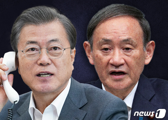 | 문재인 대통령과 스가 요시히데 일본 총리. © News1 이지원 디자이너 |