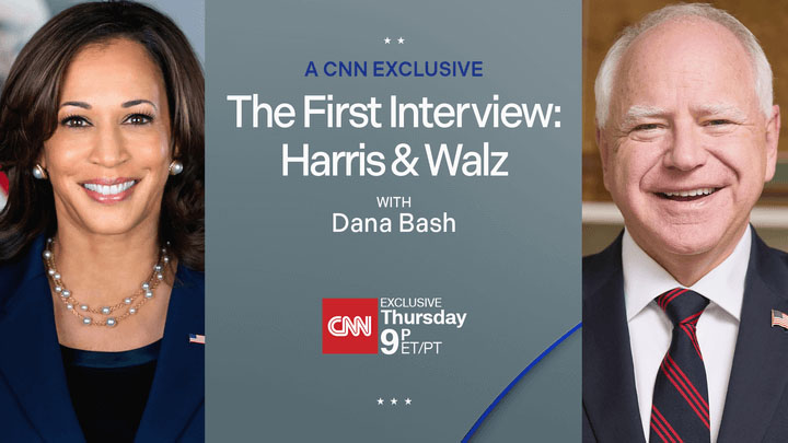 28일 CNN은 해리스 부통령과 그의 러닝메이트인 팀 월즈 미네소타주지사가 29일 자사와 첫 합동 인터뷰를 진행할 예정이라고 전했다.