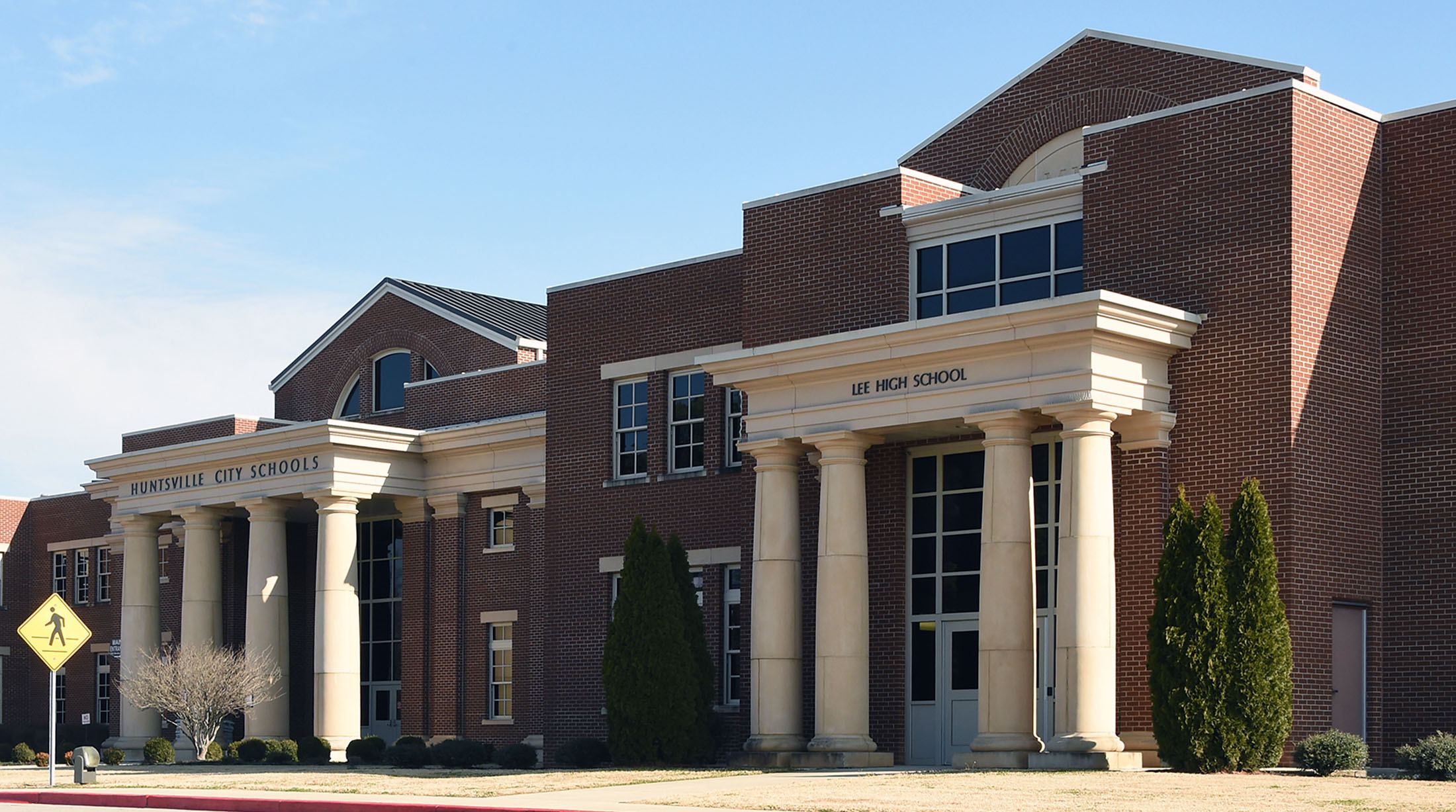 리 고등학교는 남부연합 장군 로버트 E 리(Robert E. Lee)의 이름을 따서 지어졌읆, 2012년 새 장소로 이전했다. 헌츠빌 시 교육청의 변호사 크리스 페이프(Chris Pape)는 그 교육청이 앨라배마 기념 보존법(Alabama Memorial Preservation Act)에 따른 요구조건이 적용되는지 여부는 확신할 수 없다고 말했다.