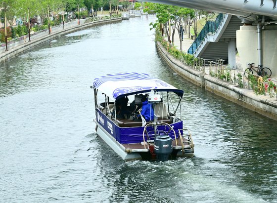 현대중공업그룹 사내벤처 '아비커스'가 지난 6월16일 경북 포항운하에서 12인승 크루즈선박 완전자율 운항 시연회를 열고 있다.(현대중공업그룹 제공)© 뉴스1