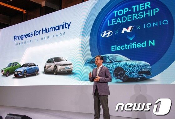 장재훈 현대차 CEO 사장이 20일 오후 서울 여의도 콘래드 호텔에서 열린 '2023 CEO 인베스터 데이'에서 중장기 전략 '현대 모터 웨이'(Hyundai Motor Way)를 발표하고 있다. 현대차는 2030년 전기차(EV) 200만대 판매 목표를 세웠다. 이를 위해 2032년까지 전동화 투자비 35조8000억원 등 총 109조원 이상을 투자할 계획이다. (현대자동차 제공)
