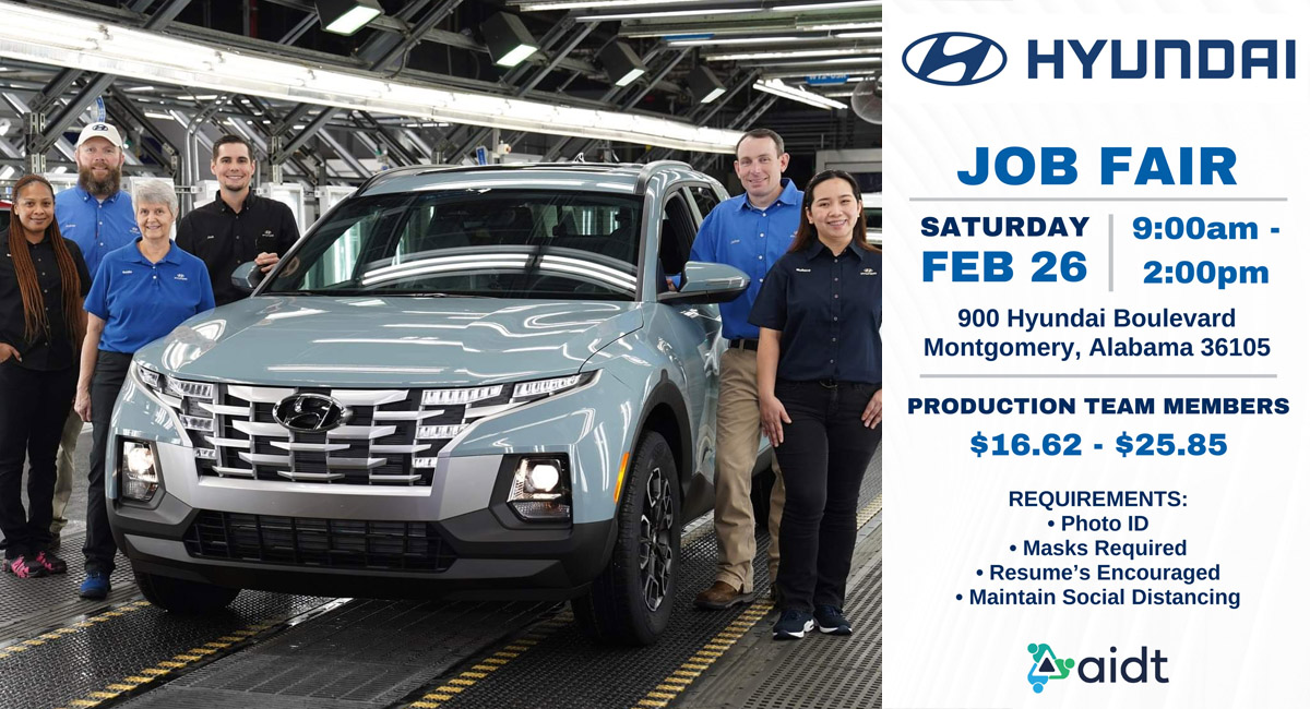 현대차는 직원 채용을 위해 주정부의 직업 훈련 기관인 AIDT와 협력하고 있다. AIDT는 이번 주말 채용 박람회를 공동 주최한다.