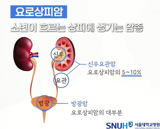 신장에서 만들어진 소변은 일시적으로 신우에 모여있다가 요관을 타고 방광으로 흘러간다. 이렇게 소변이 흐르는 부위를 ‘요로’라고 하며 그 상피에 생긴 암종을 요로상피암이라고 부른다.