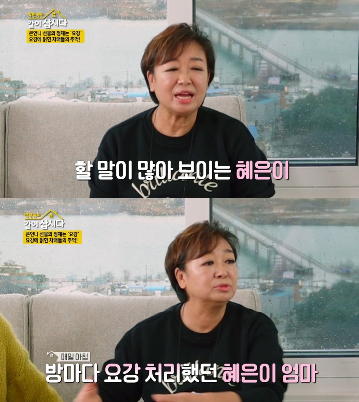 지난 8일 방송된 KBS2 예능 프로그램 ‘박원숙의 같이 삽시다’에서 박원숙, 안소영, 안문숙과 함께 혜은이가 어린 시절 명절에 대한 기억을 전했다.