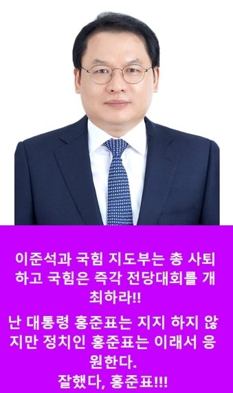 윤석열 대통령과 대립하는 모든 이들을 적으로 간주하고 있는 강신업 변호사는 이날 홍 시장이 언론과 맞선 사실을 소개하면서 “난 대통령 홍준표는 지지 하지 않지만 정치인 홍준표는 이래서 응원한다. 잘했다, 홍준표”를 외쳐 눈길을 끌었다.