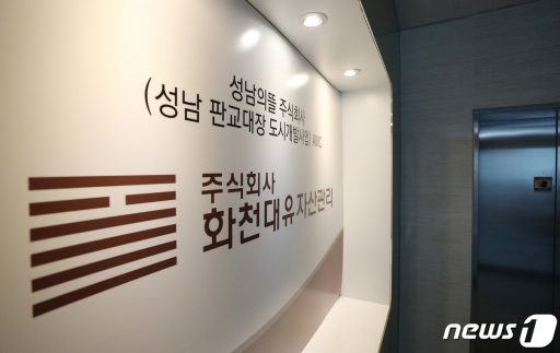 경기도 성남시 분당구 대장동 개발 사업 특혜 의혹을 받고 있는 화천대유 자산관리 사무실 입구의 모습. 2021.9.24/뉴스1 © News1