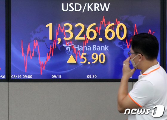 딜링룸 전광판에 달러·원 환율이 상승세를 나타내고 있다. 2022.8.19/뉴스1