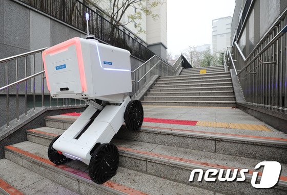 그러나 곧 ‘반전매력’을 뽐냈다. 배송 시범이 시작되자 장애물 극복에 최적화된 바퀴로 높은 계단을 순식간에 올랐다. 내려오는 데도 막힘이 없었다. 언덕도 손쉽게 통과했다. 모빈의 연구 데이터와 금호타이어의 기술력이 결합된 바퀴 덕에 가능한 일이었다. 계단 같은 경사지를 지날 때도 짐칸의 각도는 수평으로 유지해 배송 중인 물건이 굴러다닐 일이 없게 했다.