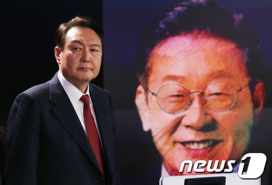 두 후보는 첫 순서인 ‘청년정책’ 주제토론부터 충돌했다. 포문은 윤 후보가 열었다. 그는 이 후보의 임대주택 100만채 공약을 거론하면서 “대장동 개발에서 6.7%만 임대주택을 짓고, 백현동은 임대주택 비율을 10분의 1로 줄였는데, 임대주택 100만채가 정말 진정정 있는 공약이냐”고 했다.