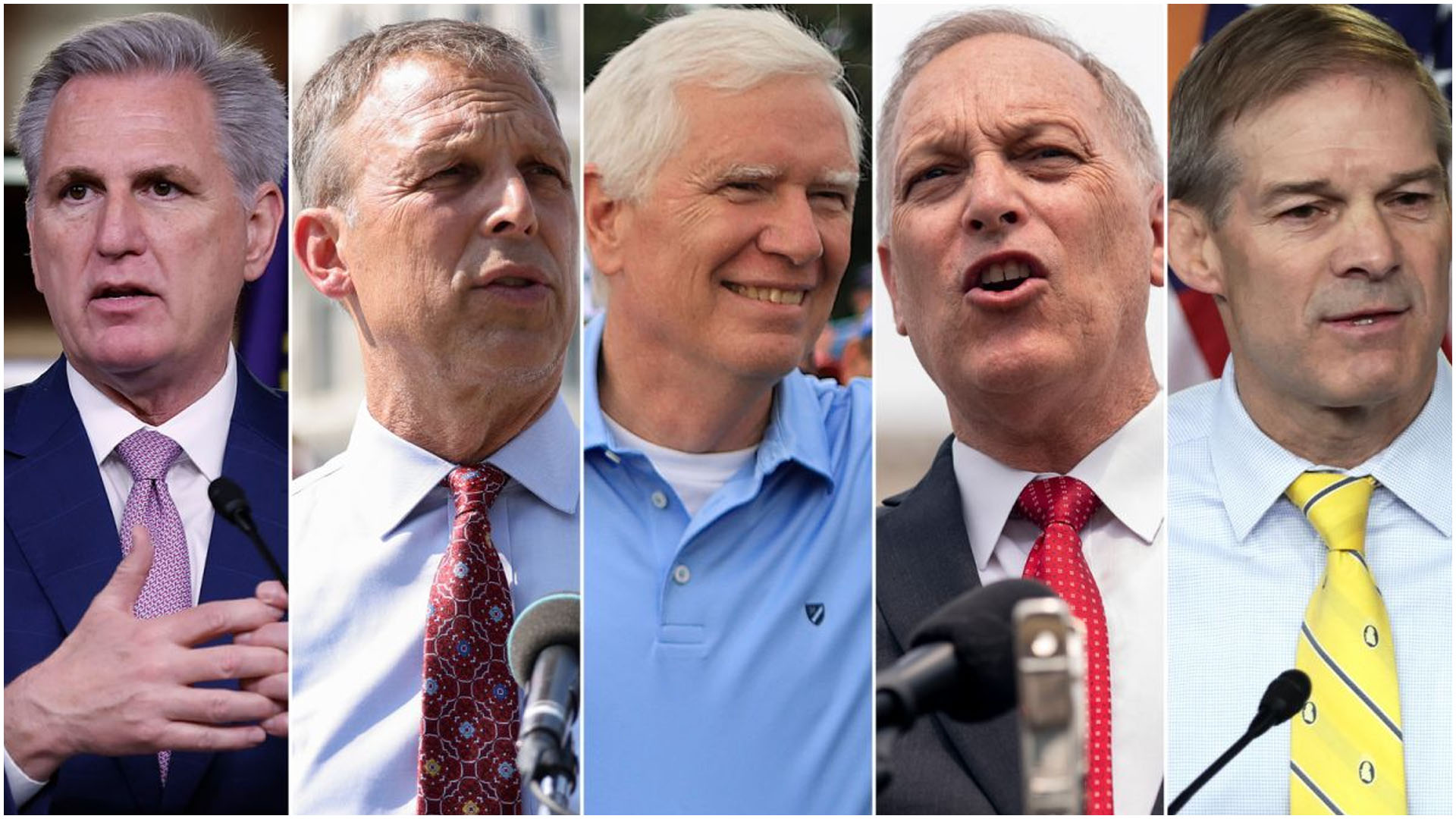 좌로부터 케빈 맥카시 하원 공화당 원내대표, 스캇 페리, 모 브룩스, 앤디 빅스, 짐 조던 하원의원.