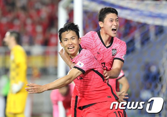 한국 대표팀의 정우영과 조규성. /뉴스1 © News1 김영운 기자