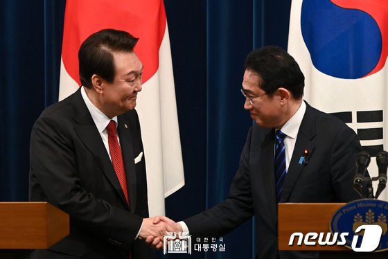 윤 대통령은 16일 정상회담 후 공동 기자회견에서 “한일 간 협력의 새 시대를 여는 첫걸음이 됐다”며 “우리 정부의 강제징용 해법 발표를 계기로 양국이 미래지향적 발전 방향을 이제부터 본격적으로 논의할 수 있는 토대가 마련됐다”고 말했다.