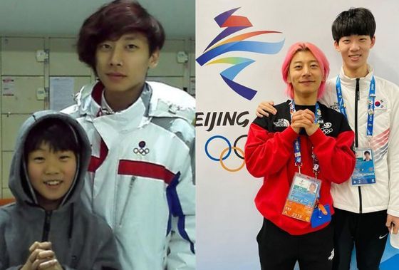 올림픽 남자 쇼트트랙 대표팀의 맏형 곽윤기와 막내 이준서가 12년 전 함께 찍었던 사진을 공개해 화제다.