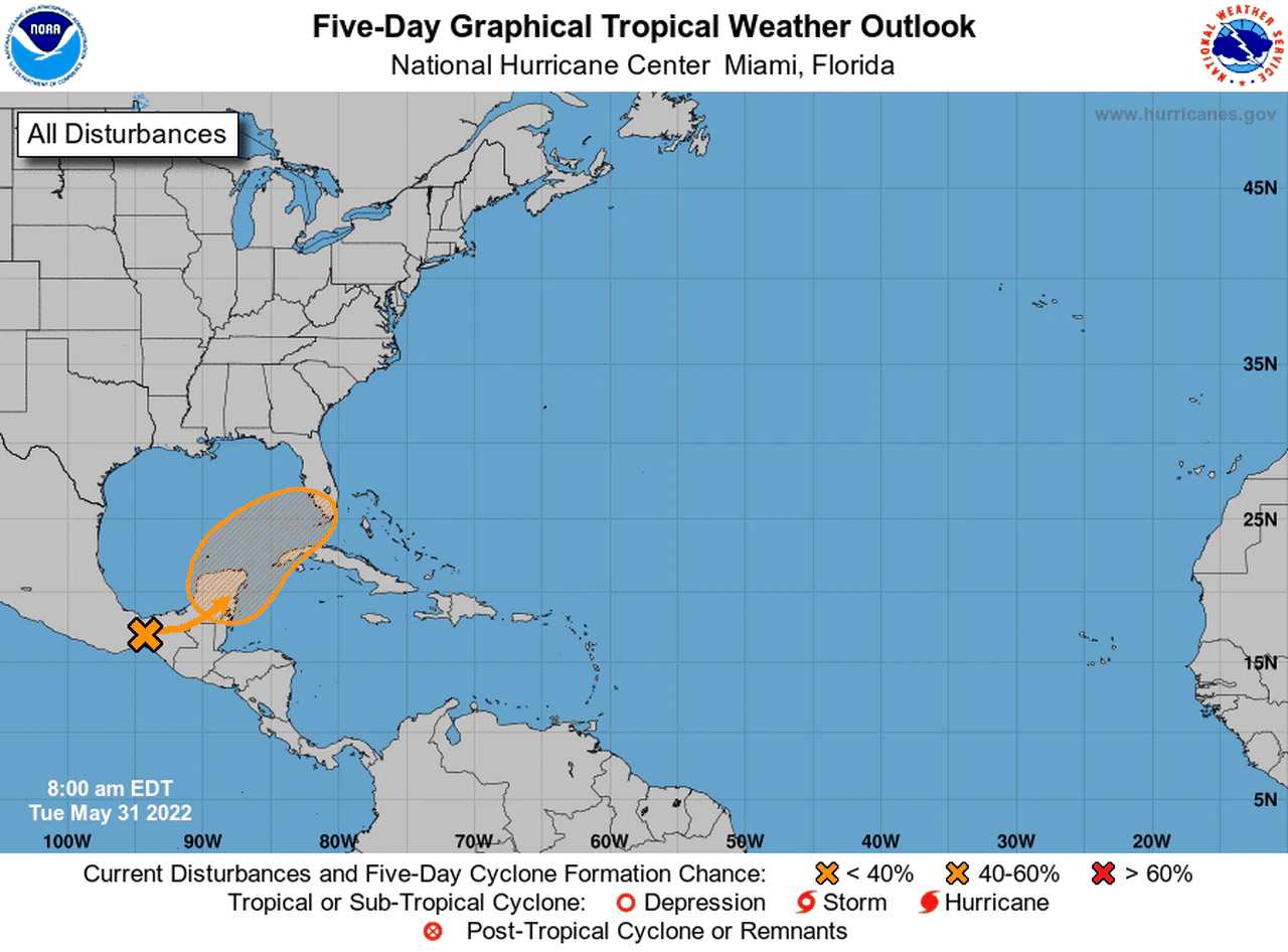 멕시코 태평양 연안에 2등급 강풍으로 상륙한 허리케인 아가사(Agatha)의 잔해로 인해 이 시스템이 형성될 수 있다. 아가사는 화요일 아침 열대성 폭풍으로 약화되었고 오늘 멕시코 상공에서 더 약해질 것으로 예상됐다.