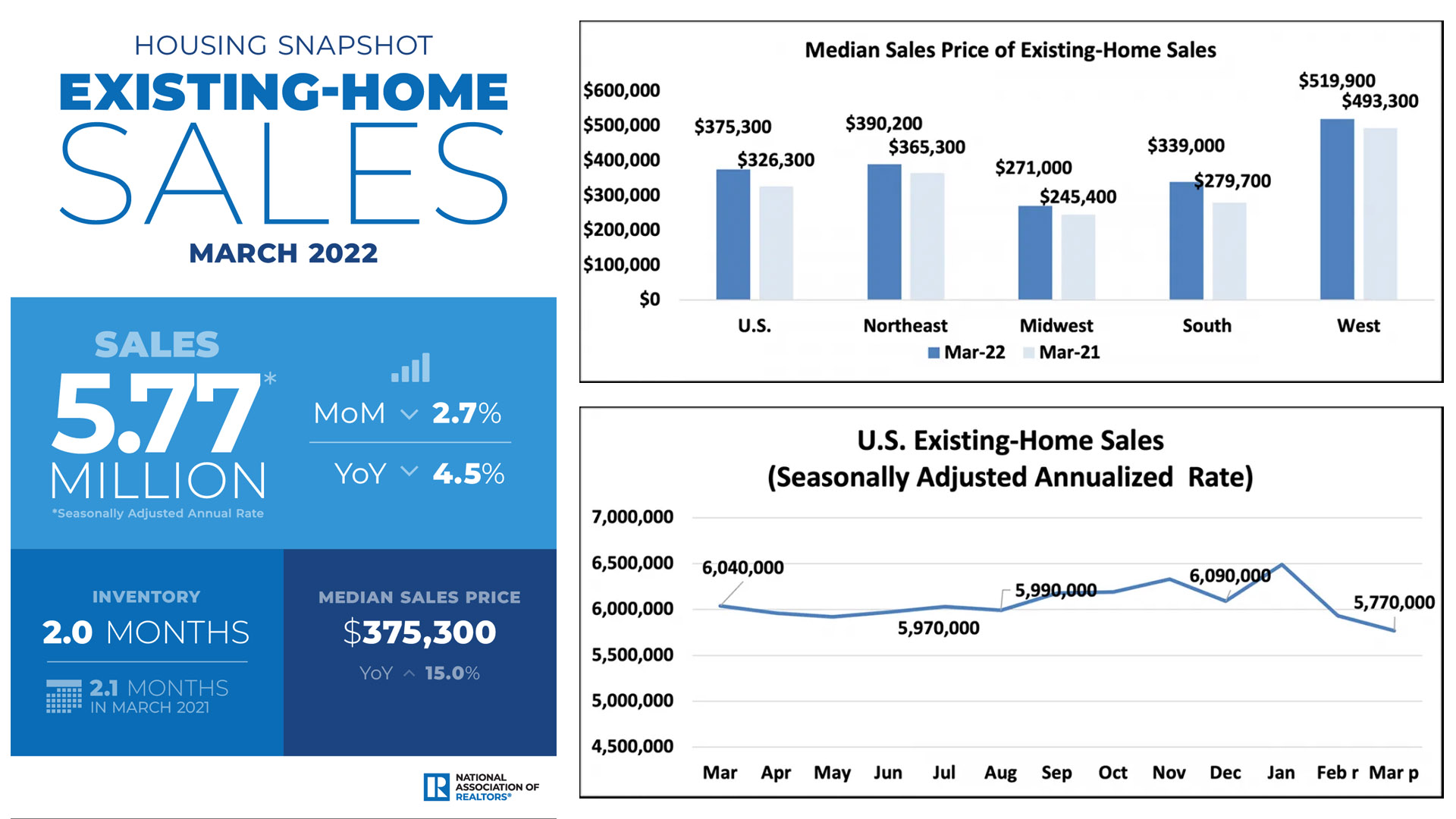 전미중개업협회(NAR)dms 지난달 기존 주택 매매가 2월에 비해 2.7% 감소했다고 오늘(20일) 발표했다. 3월 매출은 1년 전보다 4.5% 감소했다.