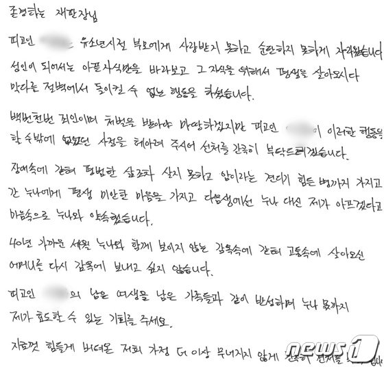 B씨가 직접 손으로 써서 낸 탄원서에는 지난 38년의 세월 동안 A씨가 피해자인 딸을 돌보다가 숨지게 한 경위가 담겼다.