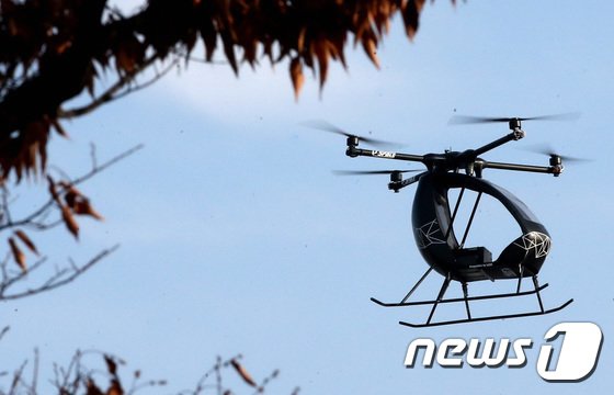 23일 오전 경기도 김포시 고촌읍 아라마리나에서 열린 2022 도심항공모빌리티(UAM) 비행시연 행사에서 UAM 비행이 시연되고 있다. 2022.11.23/뉴스1 © News1 임세영 기자