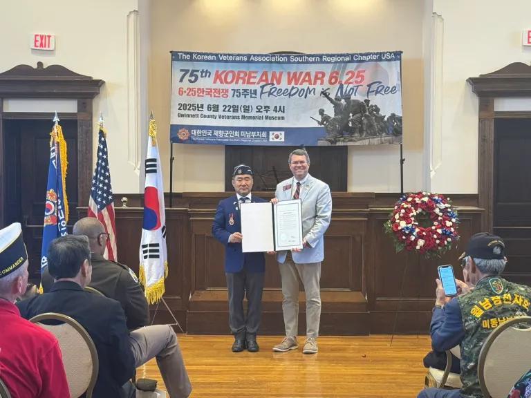이날 기념식에는 조지아 보훈처의 케리 다이어 부처장, 주방위군 시어도어 스캇 사령관, 귀넷카운티 커미셔너 재스퍼 왓킨스 등도 참석해 “자유는 결코 공짜가 아니며, 대한민국은 참전용사들의 희생 위에 세워진 나라”라는 점을 강조했다.