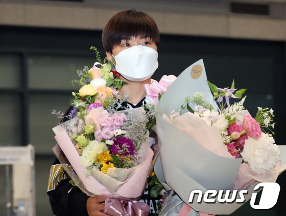 영국 여자프로축구 첼시 위민에서 활약하던 지소연이 19일 오후 인천국제공항을 통해 귀국히고 있다. 2014년 첼시 위민에 입단해 유럽 무대에 도전장을 던졌던 지소연은 8년 동안의 영국 생활을 마무리하고 WK리그에서 활약할 계획이다. 2022.5.19/뉴스1 © News1 구윤성 기자
