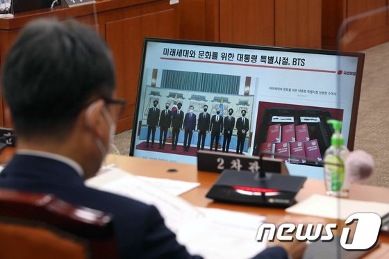 이날 국정감사에서는 UN특사 활동과 관련한 질의도 나왔다. 이용 국민의힘 의원(비례)은 BTS의 순방 비용 중 정부가 소속사에 지급한 금액에 대해 질의했다.
