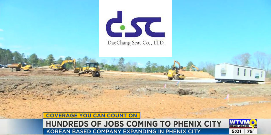 현대자동차 협력사로 시트프레임 제조업체인 DSC(대창시트)가 총 2336만6072달러(한화 약 286억원)를 투자해 앨라배마주 피닉스 시티에 시트공장을 확장한다고 피닉스시티가 29일(화) 밝혔다.