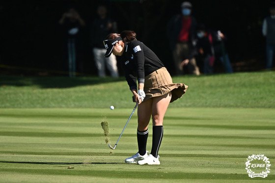 이정은이 30일 제주 핀크스GC에서 열린 ‘SK네트웍스-서울경제 레이디스 클래식’ 마지막 라운드 1번홀에서 세컨샷을 치고 있다. (KLPGA 제공) 2022.10.30/뉴스1 © News1 이재명 기자