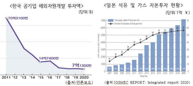 업계 관계자는 “포스코, SK 등 최근 해외자원 개발에서 성과를 나타낸 민간 사례 대부분은 기업 규모 측면에서 장기적인 투자를 유지할 수 있는 대기업 뿐”이라며 “자원 안보 관점에서 공공 중심의 자원개발이 필요한 부분 등 세심한 대책이 필요하다”고 말했다.