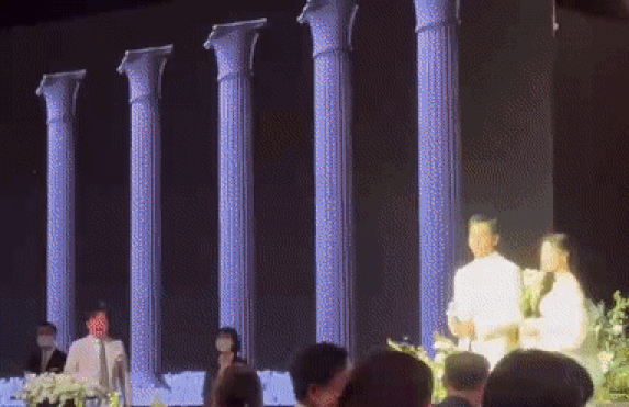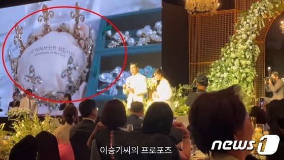누리꾼들의 눈길을 사로잡은 장면은 이승기가 이다인을 향해 ‘결혼해줄래’ 세레나데를 부르기 직전이었다. 두 사람의 뒤에는 대형 스크린 화면이 있었는데, 결혼식 동안 이들의 당시 모습이나 반응이 송출됐다.