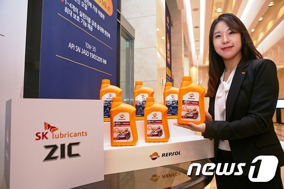 | SK루브리컨츠 직원이 제품을 들어보이고 있다.© News1 |