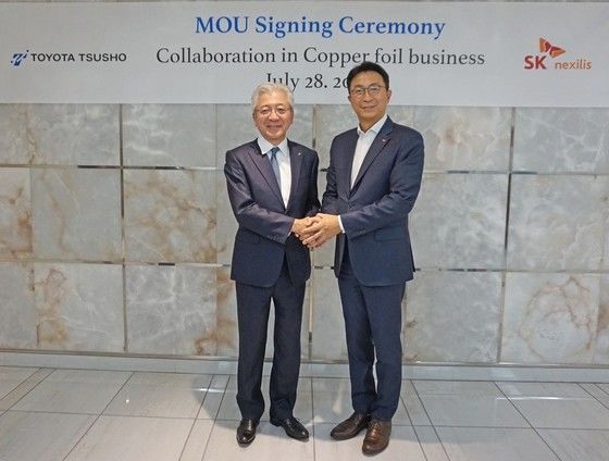 31일 SKC에 따르면 SK넥실리스는 지난 28일 도요타통상과 북미 동박 생산·공급에 필요한 합작회사(JV) 설립 업무협약을 체결했다.